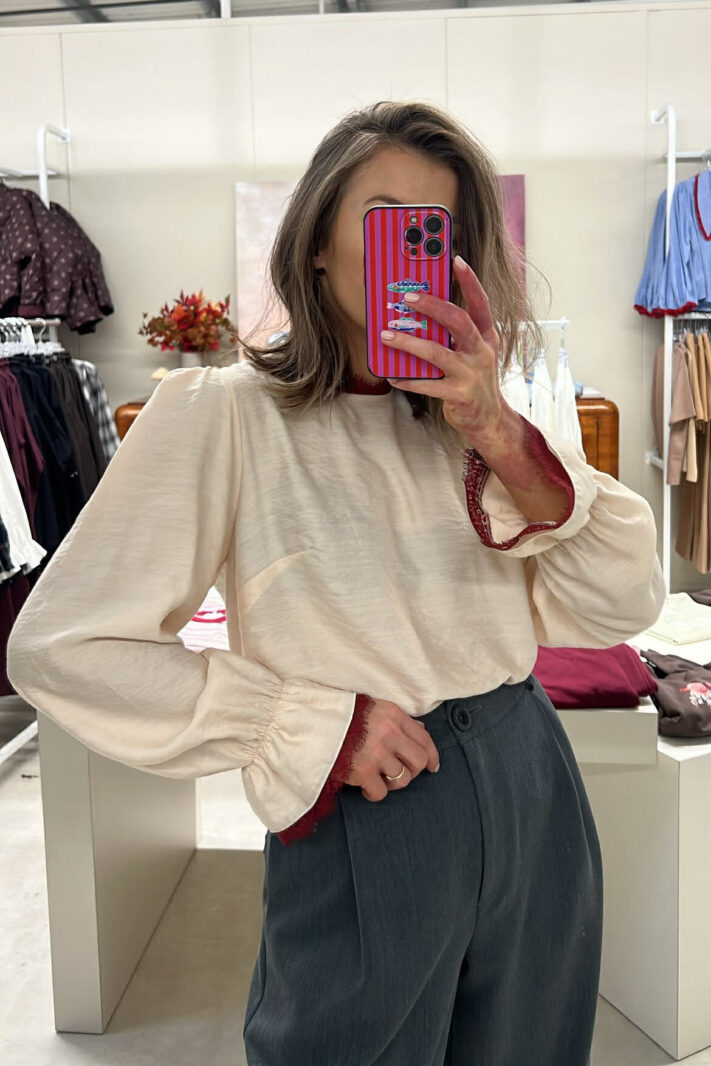Bluzka Nela wykonana w 100% z miękkiej, przewiewnej wiskozy, która delikatnie układa się na sylwetce. Subtelne wykończenia z koronki przy mankietach i dekolcie dodają całości elegancji i kobiecego charakteru. To lekka, wygodna propozycja idealna zarówno na co dzień, jak i do bardziej szykownych stylizacji.