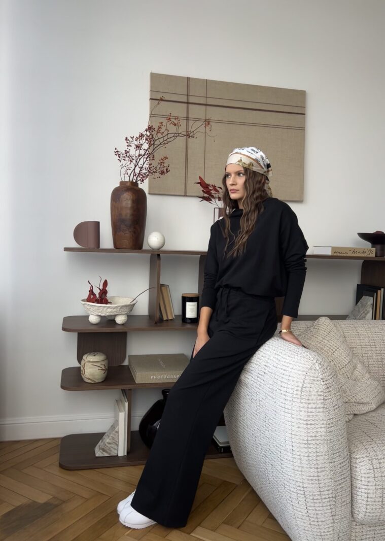 Komplet Kylie z modalu to połączenie komfortu i nowoczesnej elegancji. Wykonany z wyjątkowo miękkiego, oddychającego materiału, który pięknie układa się na sylwetce i zapewnia wygodę przez cały dzień. Luźna bluza z delikatnym kołnierzem oraz szerokie spodnie z wysokim stanem tworzą stylowy zestaw idealny zarówno na co dzień, jak i na bardziej casualowe wyjścia.