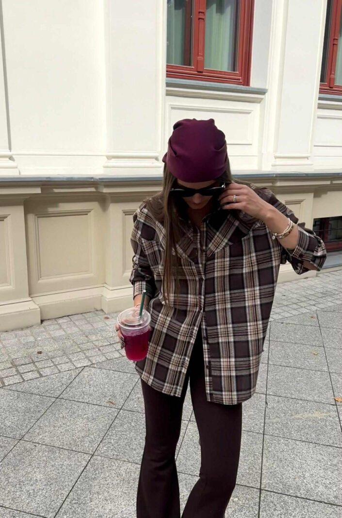 Miękka flanelowa koszula w odcieniu głębokiej czekolady to idealne połączenie komfortu i stylu. Luźny fason i ponadczasowa krata sprawiają, że świetnie wygląda zarówno narzucona na top, jak i noszona solo. Must have na chłodniejsze dni! Dostępna w wersji preorder wysyłka po 7.10