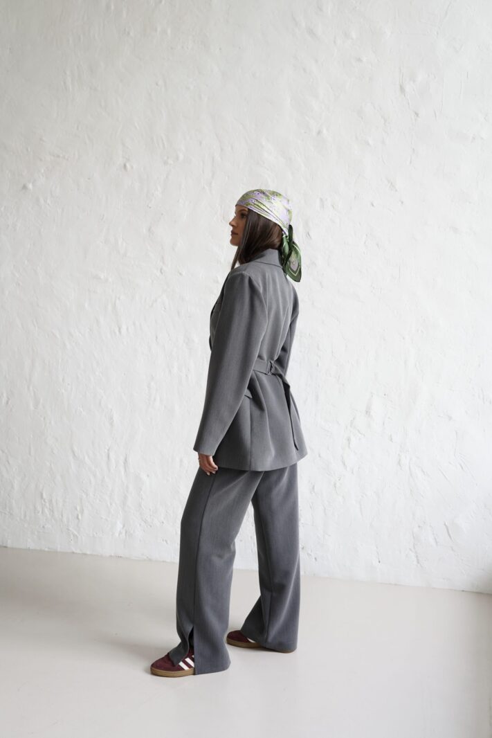 Szare spodnie Zofia to uniwersalna baza garderoby – ponadczasowe, neutralne i niezwykle stylowe. Doskonale sprawdzą się w biurze, ale też podczas luźniejszych spotkań w mieście. W komplecie z marynarką Zuzanna dają efekt profesjonalizmu z nutą miejskiego luzu.